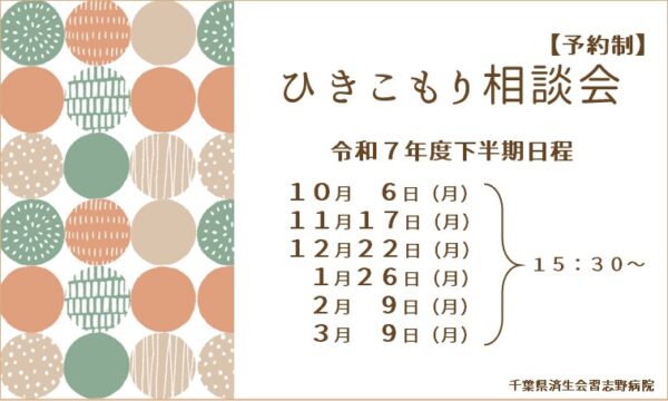 令和7年度(下半期)ひきこもり相談会(予約制)についてお知らせいたします。